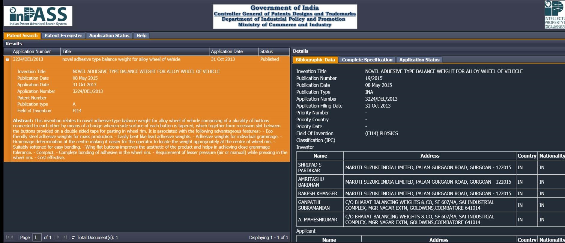 BBW registered patent with Maruti Suzuki for design and manufacture of Bridge Type Balance Weight for Alloy Wheels